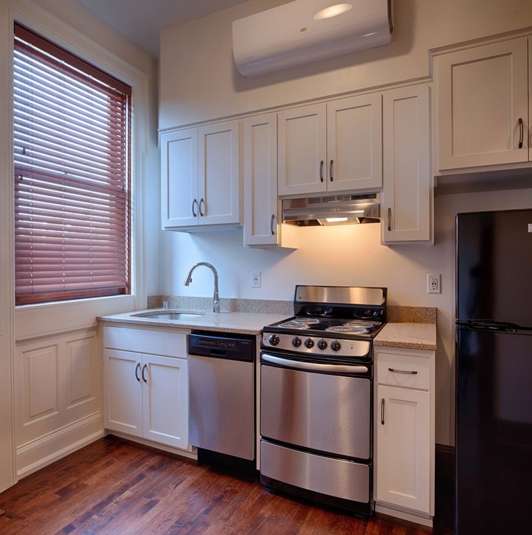 The Thompson Flats were built in 1900. We fully renovated all 12 apartments in 2018 while preserving their unique historic character. Apartment 24 has its own individually controlled heat and air conditioning, refinished hardwood floors and woodwork, and Valor gas fireplace. The updated bathroom features a glass door with ceramic tile shower and in-floor ceramic tile heat. The kitchen includes granite countertops and stainless appliances with a built in dishwasher. The apartment has Marvin thermal windows and LED lighting for energy efficiency. The Thompson Flats are located across the street from the Basilica and a half block from Loring Park. There is an additional charge of $40 per month for the apartment's dedicated Wi-Fi internet service from the building's US Internet fiber connection and trash. Ramp parking is available for $100 per month. Visit www.fletchermn.com for more details.